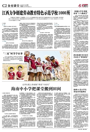 田园劳动与语文教学结合,播下一颗种子,记录它的生长过程;田园劳动与数学教学结合,丈量不同形状的苗圃,认识边和角的关系;田园劳动与德育教育结合,清扫一地落叶,争做文明学生……该省许多中小学劳动教育课程将田园劳动与课本教学紧密结合。